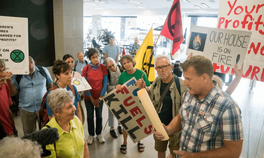 Extinction Rebellion protesters were about to undertake their biggest direct action event in Auckland to date. The plan was to head to the local BP head office, send people into the lobby, politely ask to deliver a letter in person to the CEO, and refuse to leave until they were able to do so. I wondered if perhaps BP had been picked out for their egregious history of blocking climate action, but no, it was just that they had a head office right there in Newmarket, and so were a realistic target for this particular group to get to.