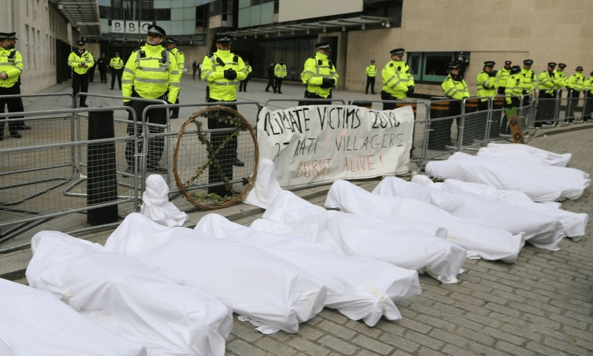 The BP action was one of several early salvos for New Zealand groups. Extinction Rebellion members earlier disrupted traffic in Tauranga, and managed to cut the water to Environment Canterbury’s offices in Christchurch. There are plans for a protest at Auckland Council, calling on them to declare a climate emergency. In keeping with the hardcore rhetoric favoured by the group, that protest will include a mock funeral – other protests in Britain have had names like ‘Blood of Our Children’. Extinction Rebellion members in Auckland are also providing advice and operational support for this week’s student strikes.