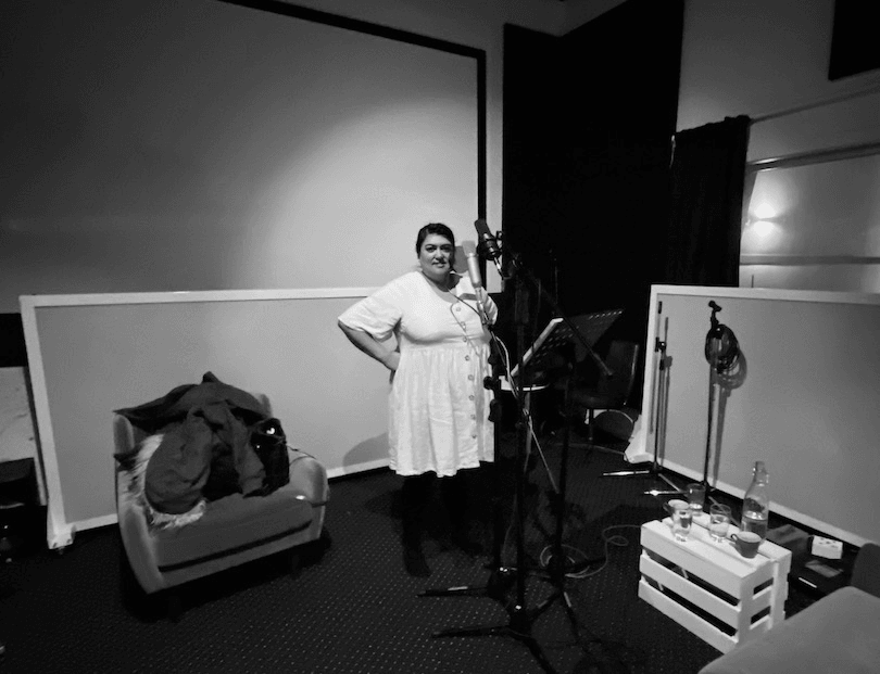 She says she approached it like a film, taking people on a journey with storytelling and sound design. In the writers’ room, Stewart-Te Whiu was tasked with helping Dravid dig deep to stretch the one-hour stand up to a two-and-a-half-hour podcast, but says it was so rich with detail it wasn’t hard. “Her stand-up is so funny and it’s also really heartfelt, but you are left with all these questions of why.”