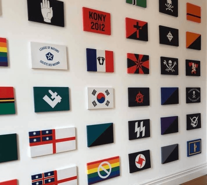 On Saturday, a gallery show in Auckland ended. The exhibition featured rows upon rows of flags, each on a relatively uniform rectangular frame, set in neat rows.