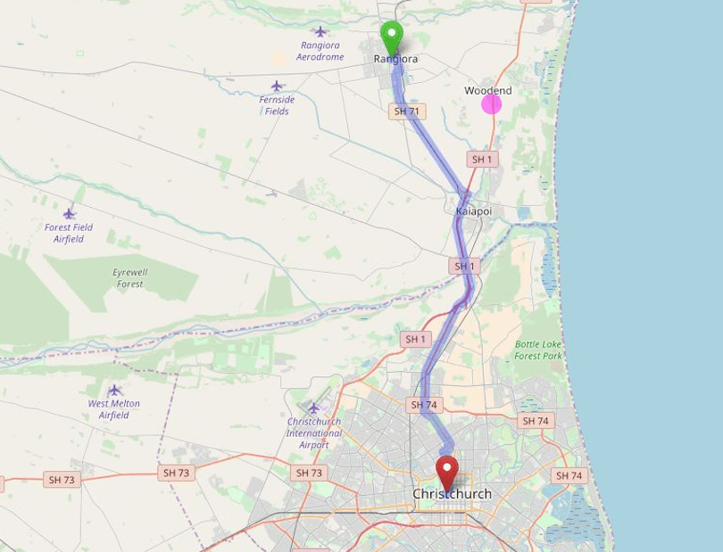 I’m not, but it isn’t by design. I’ve taken the back way [read: took a wrong turn] out of Rangiora and gone through Woodend onto State Highway 1.