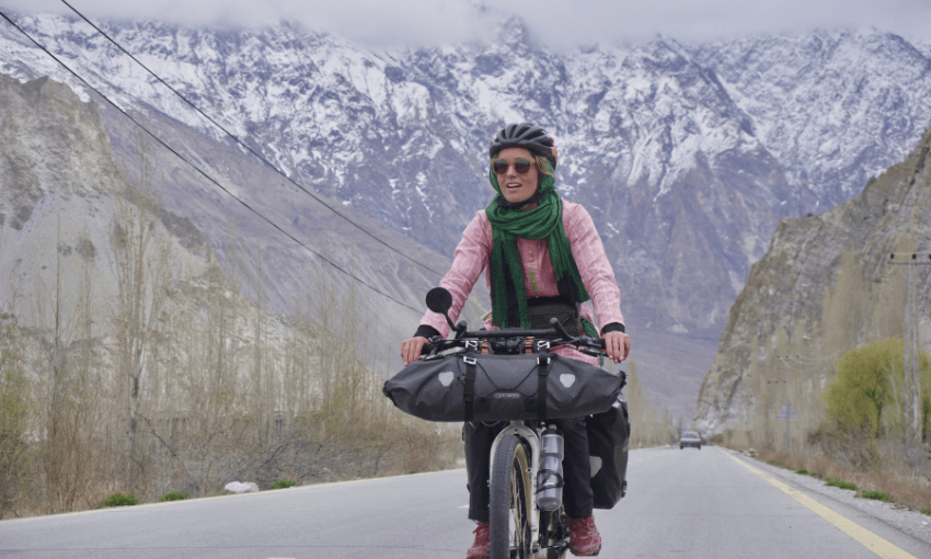 We’d landed in Lahore and taken an overnight, hair-raising bus trip to Gilgit, a town that’s a smudge of green in a broad, grey valley near the confluence of the Gilgit and Hunza rivers. The plan: to ride our bikes north on the Karakoram Highway, one of the world’s highest paved roads that snakes its way up to the border with China. And while we were at it, to shoot a film that’s soon to screen at the New Zealand Mountain Film Festival.
