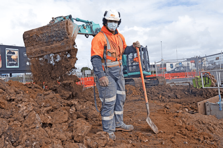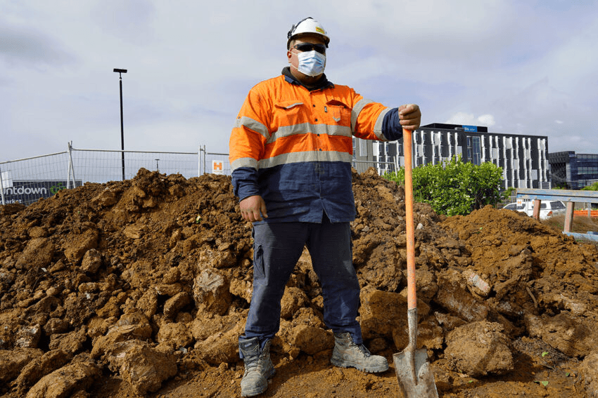 Drain layer Ses Tohi (aka Professional Mud Dog) takes Sherry Zhang and photographer Edith Amituanai on a tour around his work site near Auckland Airport – and talks about what he loves about his job, misconceptions about tradies, and what it’s like owning his own business.