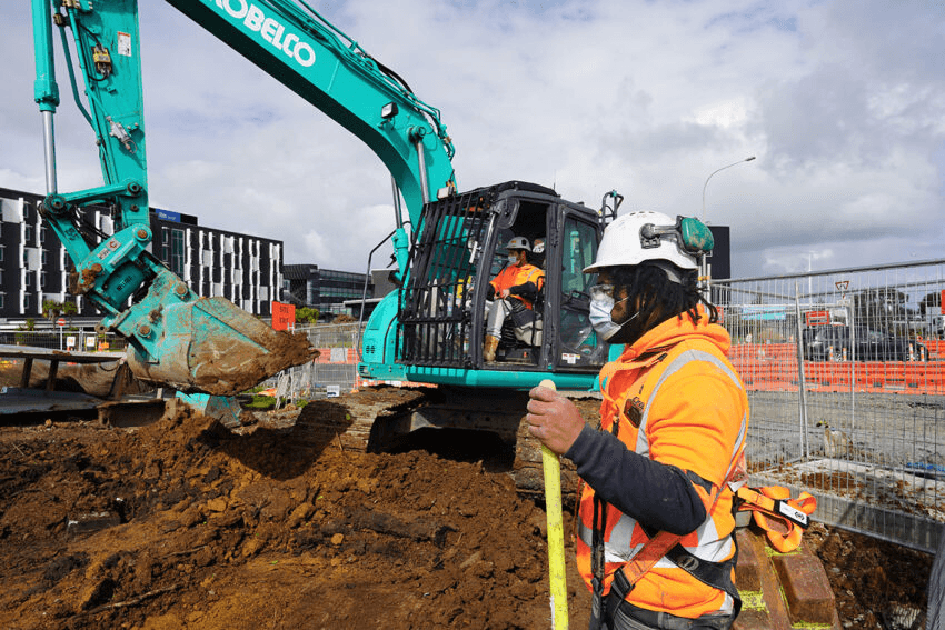 Ses Tohi, director of drain laying company SS Civil, prefers to be called “captain, not boss” by his team consisting of welder/boxer Nathan, landscaper Josh and apprentices Phil and Tai. They’re busy laying the groundwork for a new road in Māngere, not far from Auckland Airport.