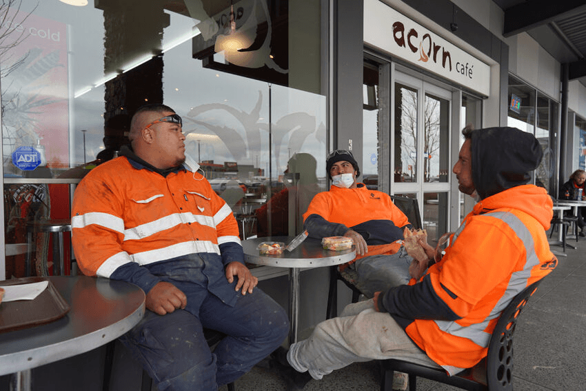 At lunchtime, Tohi says he’s buying. “We’ve gone three months with 100% in safety which is such good news,” he says. “There were 300 deaths last year. From roadworks, that kind of stuff. It’s dangerous work. Today we found a water valve. Didn’t expect that. The pressure of the water main is probably 20 bar, so if you were to put a pinhole in it, would squirt 60m, and probably cut your hand.”