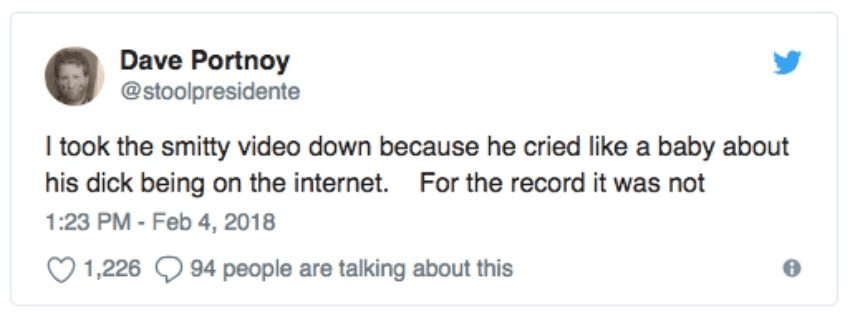 In a now-deleted post, and therefore lacking ~full~ context, Portnoy has been quoted as saying