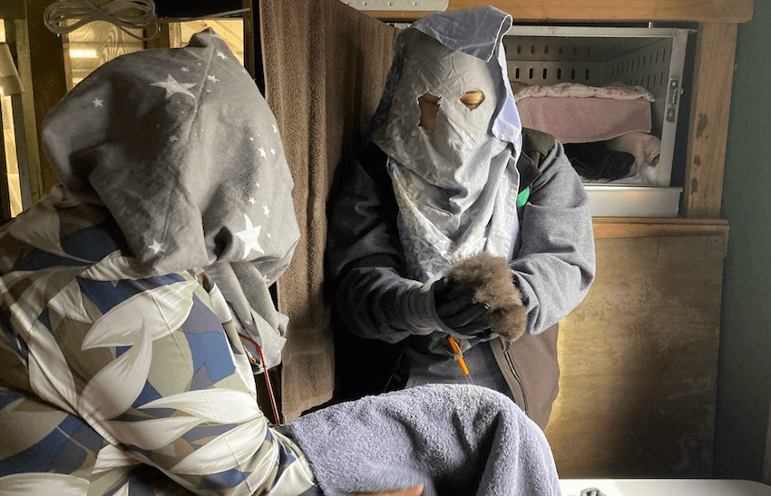 Over the decades that she has worked with wildlife, Miller has learned to walk back her teenage dream of saving the world. “That’s just not realistic today, what I do now is take things one day at a time, and hopefully relieve some suffering.” When we catch up a few days after my visit, she has some sad news: Squeaky Toy, the delightful little fluffball who they diligently fed from beneath their scary hood, didn’t make it. “I’m afraid there was a bout of tears for him. We really do cry for our patients.”