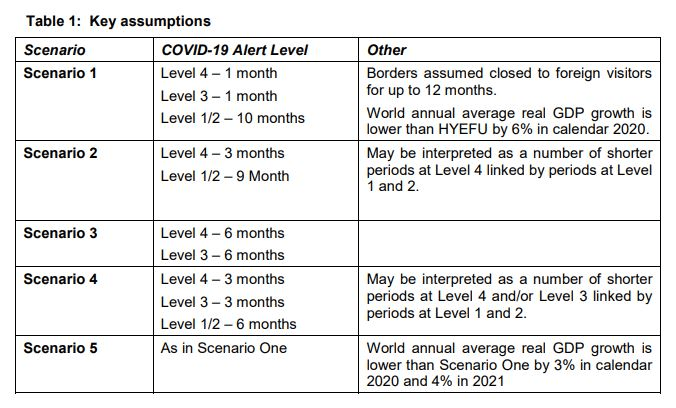 Treasury released a number of scenarios at each alert level to model the impacts of Covid-19 on the economy. View the Treasury scenarios here, and a fuller analysis of the scenarios from Alex Braae on The Spinoff here.