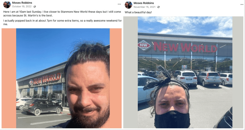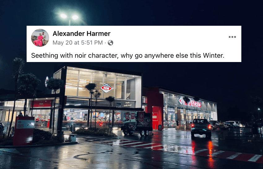 If he sounds enthusiastic about New World St Martins, that’s because he is. Harmer is one of around 500 members of the New World St. Martins: Unofficial Fan Page, a Facebook group established in 2016 to “celebrate our favourite supermarket in New Zealand: St Martins New World, Christchurch.” Started by Moses Robbins, a digital marketing expert and musician, the page is full of selfies in front of the supermarket, videos of buskers jamming out, reminders about free in-store promotions and stunning exterior shots of the supermarket at sunset, framed by a rainbow, or in the chilly Christchurch night.