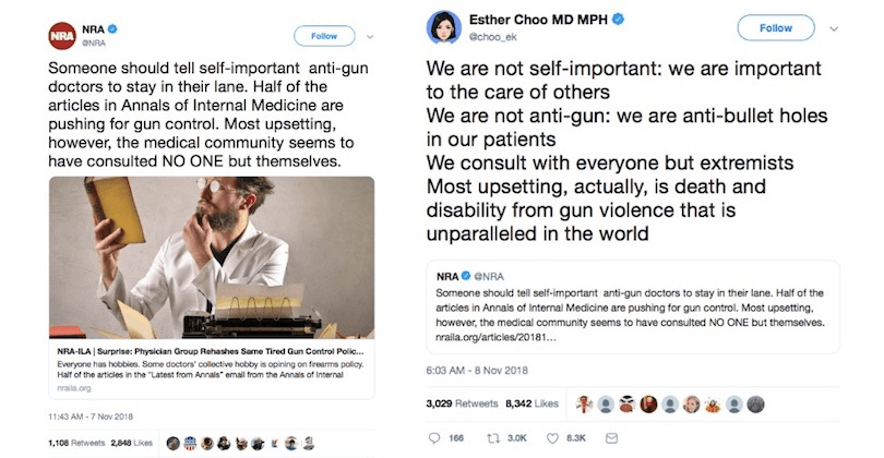 Last Thursday, the National Rifle Association (NRA) posted a deeply provocative and surprisingly idiotic tweet about doctors in the United States.