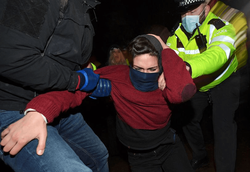 Saturday night’s south London vigil turned violent after police attempted to disperse crowds they say were breaching Covid-19 laws. This led to police physically restraining protesters, in a way that’s been described as “manhandling”, and culminated in the arrest of four people.