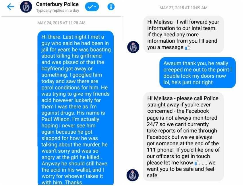 If this had been passed onto Corrections or the Parole Board, it would almost certainly have seen Wilson recalled to jail – but police did nothing about it. This is incompetence.