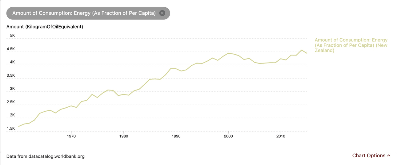 And over recent decades we have become increasingly energy-hungry. Since the 1960s, our per-capita energy consumption has increased three-fold, as shown in this graph.
