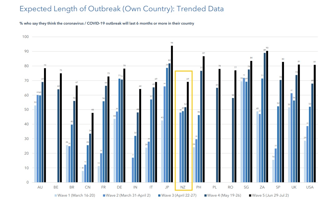 We also increasingly see the Covid-19 outbreak in New Zealand as a long-term prospect. Among those surveyed, 69% said they thought the outbreak would last for six months or more, increasing significantly from just 52% in May.