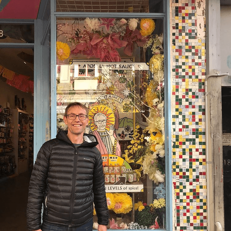 The Saint Ashley Bloomfield statue from the Iko Iko window
