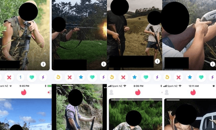 Dating profiles are meant to portray important aspects of a person’s life while also trying to attract potential partners. Profiles only allow a handful of photographs. Either firearms are extremely important to the lives of far more men in Auckland than I realised, or men hold guns in Tinder photos in an effort to attract potential partners. I’m not sure which is more disheartening.