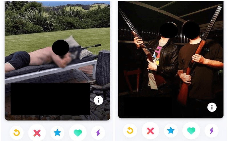 But then we start swiping through Tinder. I’m no statistician, but a significant number of men select a photograph of them holding a firearm (sometimes with a recently killed animal for added effect) as one of their profile photographs. It’s safe to say that I didn’t expect to see so many guns within a 10km radius of millennial-filled, relatively liberal Auckland. When I began wading into the world of Tinder, I treated a profile featuring an armed individual as an easy left swipe. However, the most recent mass shootings in the United States have made me think more about my are-you-randomly-armed Tinder filtering system.
