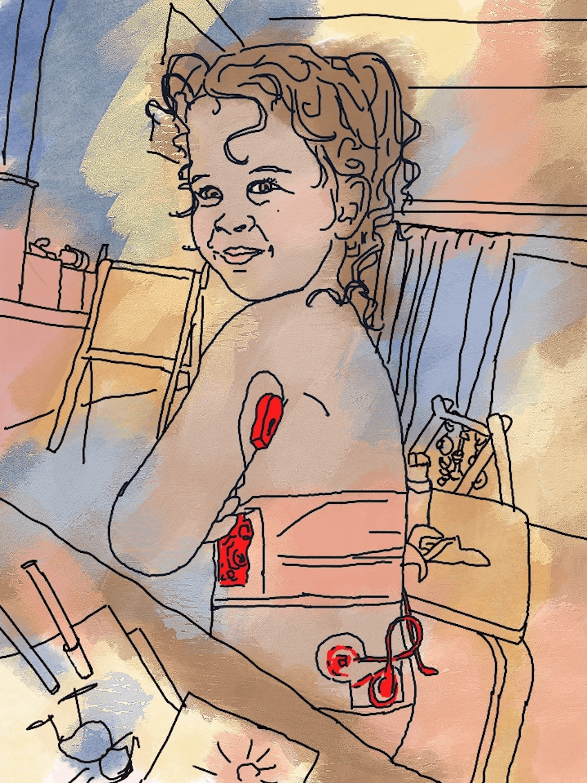 Scarlett is four years old. She likes drawing, ice cream, and gherkins, and can enthusiastically name all of her doctors and nurses in the local diabetes team. She goes to daycare during the week, wearing an insulin pump and a CGM that her mum can monitor from home via her cellphone.