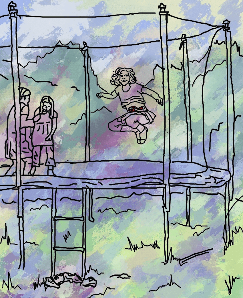 Tyler is nine years old and wants to go on the trampoline. She interrupts her mum, Natalie, to ask if she can.