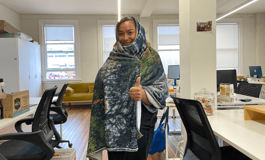 Given the blanket arrived at the peak of summer it’s been hard to properly judge its warmth. The blanket is described as being made from “microfleece”, which is not especially insulating but very lightweight. Used to combat The Spinoff’s aggressive air conditioning, it has done a solid job of keeping me warm at work. Would I trust it to keep me cosy, in bed, in the depths of winter? Probably not.