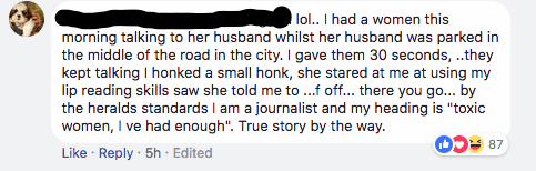 It was here, on the trusted social media platform of Facebook, where hundreds of New Zealanders took it upon themselves to disprove Kirsty’s hypothesis about so-called toxic masculinity existing in the land of the long white cloud.