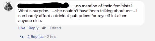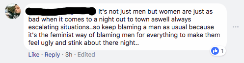 “This is what is meant when we talk about toxic masculinity. Dominant behaviour that threatens women and promotes violence.