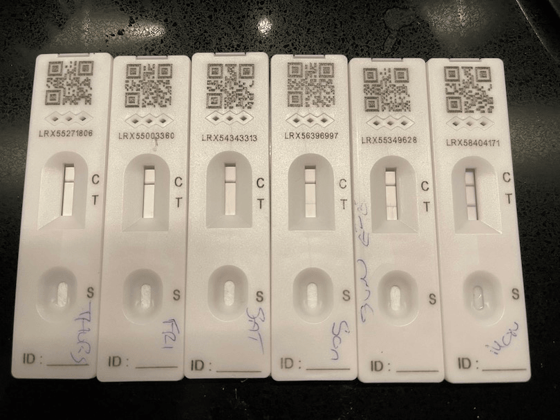 Maybe it was because I was viewed and treated as having Covid before I got it, maybe for once I really had listened to my own body or maybe it was paranoia, but from the moment of arriving in New Zealand, I had self-tested using the free flow test kits the NHS supplies. I was given two by a nice man in a high-vis jacket on London’s Carnaby Street who was handing them out like promotional leaflets.