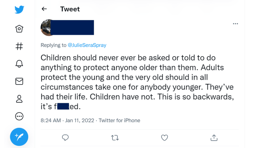 The tweet was indignant, as commentary about children and Covid-19 tends to be. We, as a society, tend to get sensitive about kids, when we’re not ignoring them. And, as the child vaccination effort gets underway in New Zealand and parents are making decisions about whether and when to get their 5-11 year olds vaccinated, we’re finally talking about kids. So it’s time for us to start talking about how we’re talking about kids.