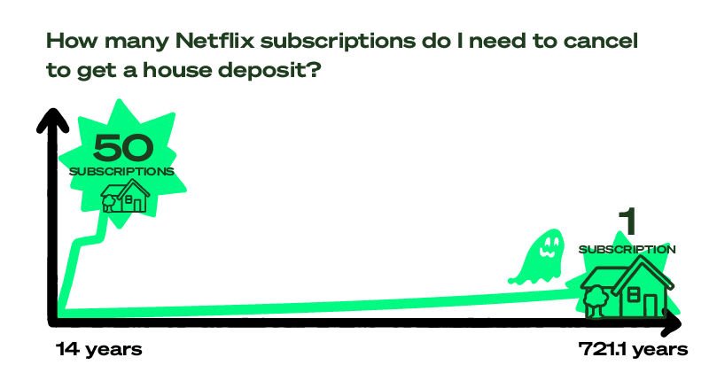 By cancelling not one but 50 of your streaming subscriptions, you’ll save enough money in 14 years to buy a house*.