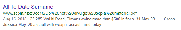 Didn’t spot it? It’s the Yellow text – “Timaru” – on the yellow background at the bottom. Clicking that link takes you to their MEMBERS ONLY secret page with all their special MEMBERS ONLY information, including details of more than 20,000 court appearances and hundreds of alleged debts.