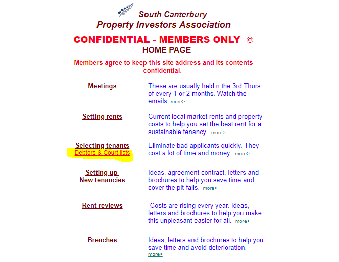 The South Canterbury Property Investors’ Association has now taken their member website down, or perhaps just moved it to some other super secret URL, but the records they once shared so openly (albeit slightly hidden) remain searchable and a even archived in some places.