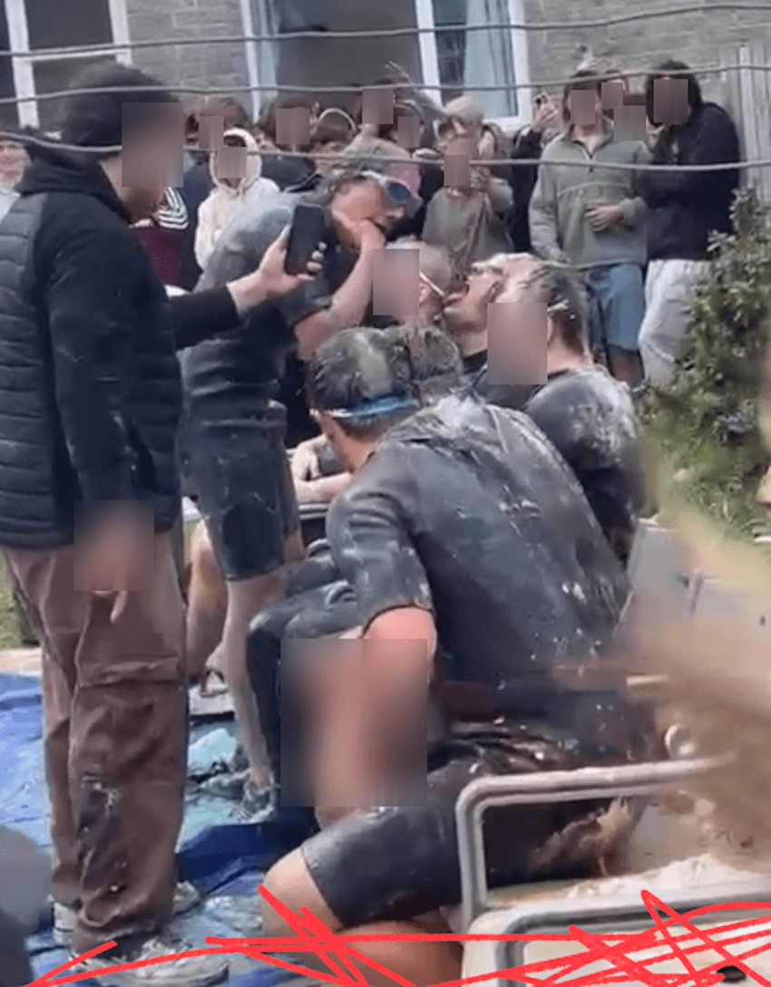 Vomit’s omnipresence in hazing rituals is astonishing. It’s reserved mostly for the boys, who jostle for superiority in an environment that mixes one-upmanship and alcohol with bodily fluids and self-harm. One student told Critic in 2017 “If one of the boys does a double Diesel funnel, you can just do a triple Diesel funnel… [or] a shoey of my bro’s piss.” That fateful afternoon, 100 people watched as someone had a wheelie bin of vomit showered over their head at an initiation that made national news.