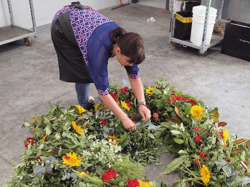 Ginny Fagan, the owner of Charmed Flowers, lives in Riccarton, just around the corner from the Masjid Al Noor mosque. After talking to the son of someone who attended the mosque, she decided to use her skills as a florist to help out. She put a call out on Instagram for volunteers; more than 60 came to help, but there were at least 200 more people who sent messages. Using flowers that were brought in by the volunteers, as well as more donated by United Flower Group, Ginny and her team started to make bouquets and wreaths for the families. There was a sense of urgency – Islamic tradition requires the bodies to be buried as soon as possible. In a new warehouse in the industrial suburb of Wigram, more than 50 wreaths are stacked on trollies. There were so many donated flowers that the team made additional bouquets, as well as two large heart-shaped wreaths. When the bodies have been identified by the coroners and released to the families for burial, Ginny will be ready. With the help of her volunteers, and the generous donations from the public and suppliers, more than $15,000 of flowers will be given to the families.