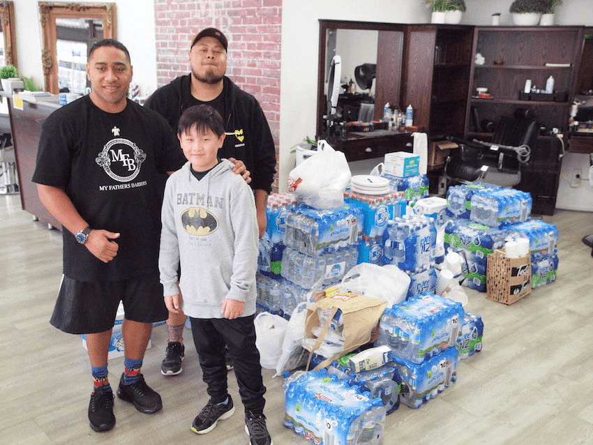 The response was so overwhelming that another call out had to be made, this time asking people to stop bringing more. On Sunday, they turned their attention to practical items, publishing a list of things the families needed: bottled water, nappies, disposable cups. That day the barbershop was a hive of activity, with a constant stream of people popping in to drop off items. As well as the items for the families affected, many people have donated petrol vouchers for those delivering the items. By 2pm, they had already made 10 trips to the support centre, and more than $2,000 in petrol vouchers has been dropped off. All the while, two men were sitting under aprons, having their hair cut and their fades updated.