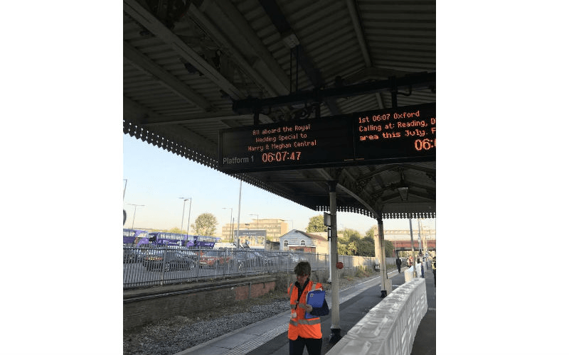 I took a luxuriously tepid shower, packed my suit and made my way downstairs, past the Travelodge bar, which was hosting two days of 24-hour happy-hours (I suppose that is just 48-hours, but that was how it was advertised). At the train station police officers were setting up security fences in anticipation of the crowds. I bought a ticket to Windsor, and walked through the turnstiles – only to realise that you didn’t have to buy a ticket and you could just get on the train for free. I plan to expense my £2.80 to The Spinoff.