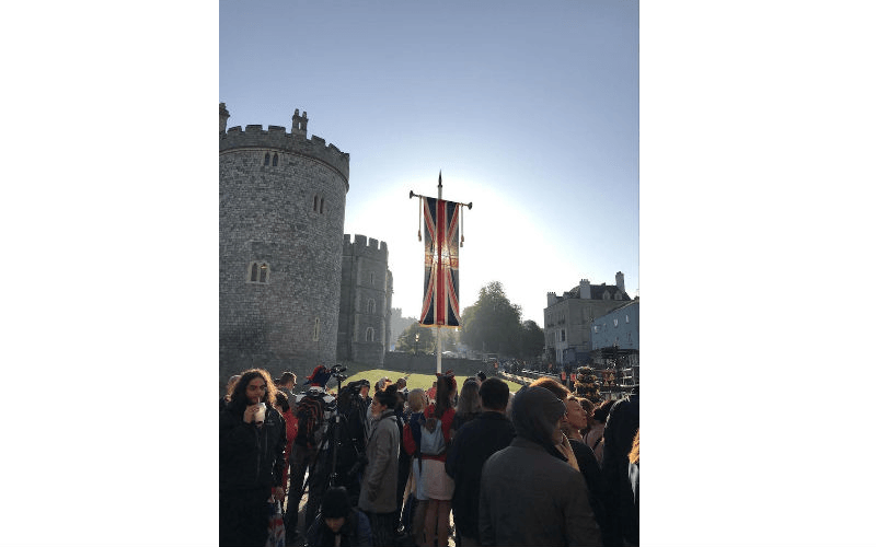 I settled in for the wedding ceremony. It was moving and incredible to have a front row seat, only just outside the castle walls. I was immensely grateful to the Royal family for sort of inviting me to stand outside on the footpath and listen to the BBC broadcast of the ceremony being played over loudspeakers. What a day for Britain, and especially for me.
