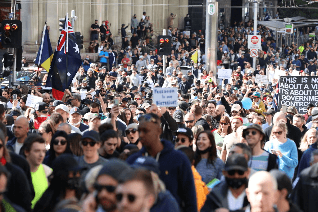 The Australian far-right has no such compunctions. On August 21, 4,000 fascists and conspiracists took to the city’s streets, accosting bystanders and accusing the pandemic and its associated public health measures of being part of the Great Reset, the Great Replacement, Open Society Foundations – whatever the opportunists think will work. On Saturday a smaller number marched again as police created a ring of steel around the city that kept out essential workers and essential service-users, too. They weren’t cowed by any counter-protestors, because their opponents don’t want to get people sick. The rally’s more plausibly genial analogues in Australia media and politics – more than one of whom flat-out lied about a Black Lives Matter rally outside of lockdown in mid-2020 being the origin of Victoria’s last disastrous outbreak – were entirely silent. It’s hard to know what impact the protest had on transmission here – why would you go get tested for something you don’t believe in, administered by someone who’s in on it?