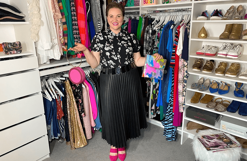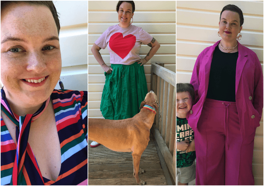 I was captivated. Not just by the content but by her. In a video on dopamine dressing – the idea that the way you dress can change your mood – she stood in front of the camera wearing hot pink pants and a knitted jumper with red and pink (two colours I thought you weren’t allowed to wear together), silver and black and orange and maroon. She was a vision.