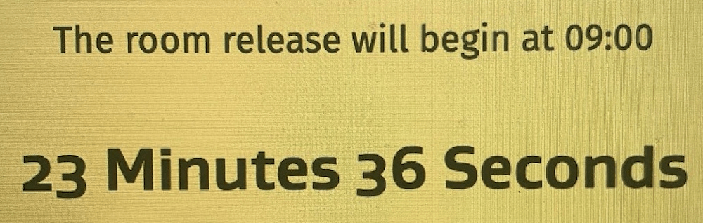 There will be another release of rooms in a few weeks’ time. Logic says there will be at least 3000 fewer people wanting rooms, so each time may get a little easier.