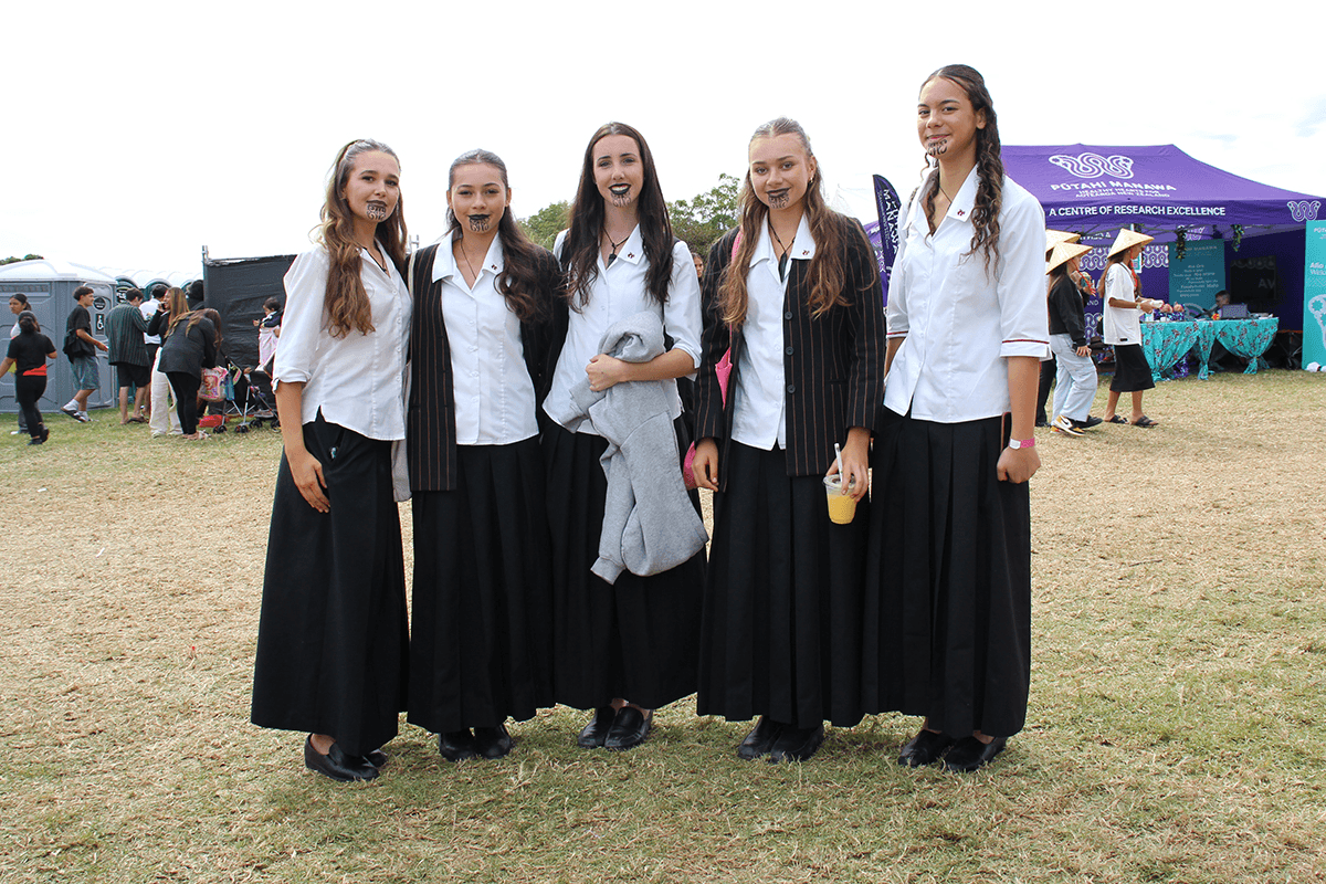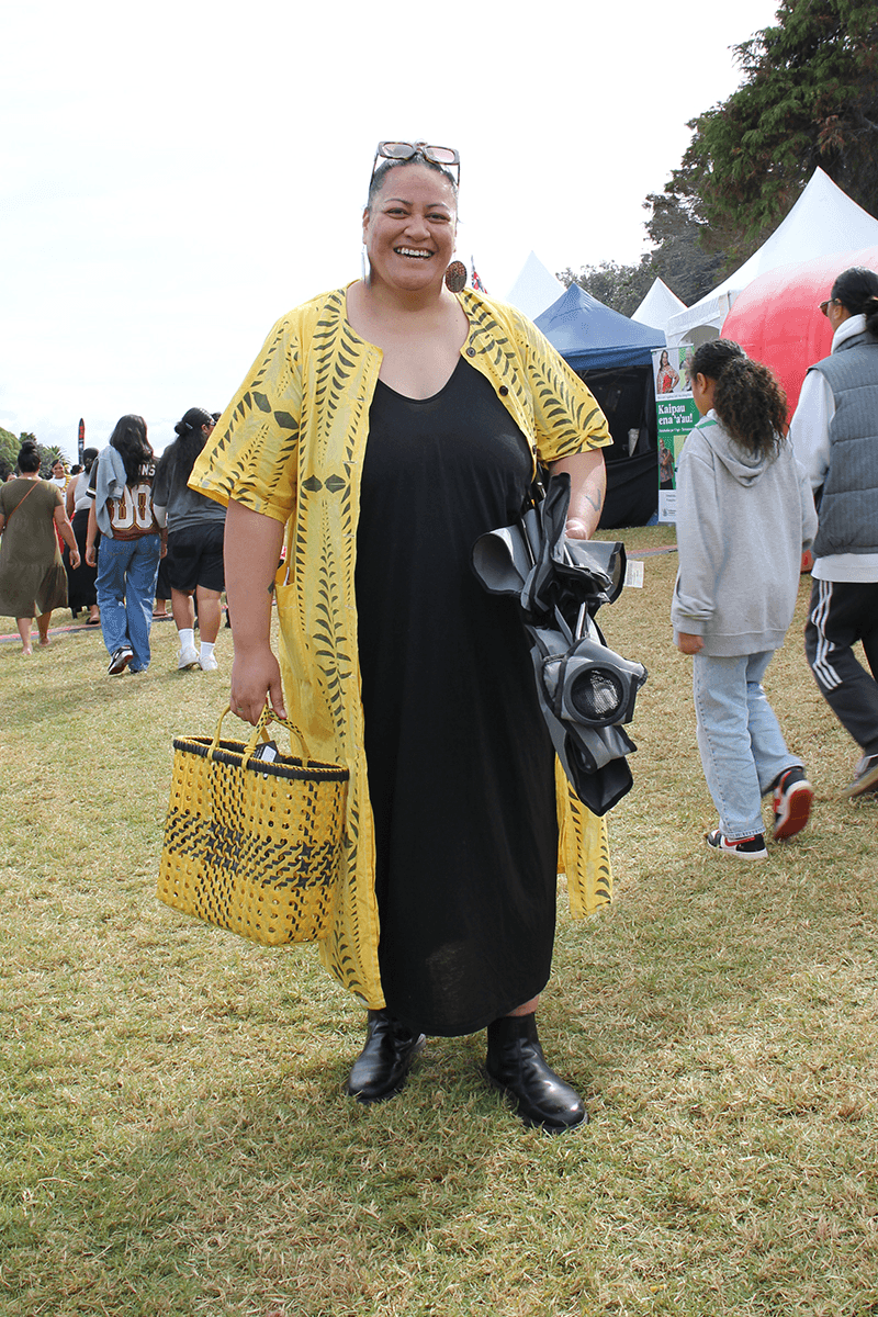 The mix of traditional and contemporary fashion in the crowd seems to reflect this year’s theme, me anga whakamuri kia koke whakamua (looking to our past to determine our future). Many of the garments used on stage are custom made by hand, and are paired with practical items for a full day out in the sun at the festival.