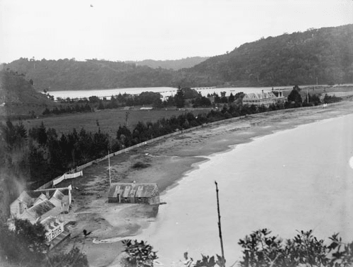 In te reo Māori, Waiwera means ‘hot water’ – a reference to its beach, where some digging in the sand would cause natural hot springs to appear. In 1845 Scottish immigrant Robert Graham was in Waiwera sheltering from a storm when he noticed people sitting on the beach in pools of hot water. Intrigued, the would-be tourism mogul set about buying the land. For a price that some sources claim included “26 blankets, four spades, one cask of tobacco, four double-barrelled guns, one bag of shot, four cartridge boxes, three casks of powder, five shirts, two cloth caps, one coat and £16 in cash”, Graham purchased roughly 40 acres of land in Waiwera. Within a few years, New Zealand’s first tourist spa had been launched.