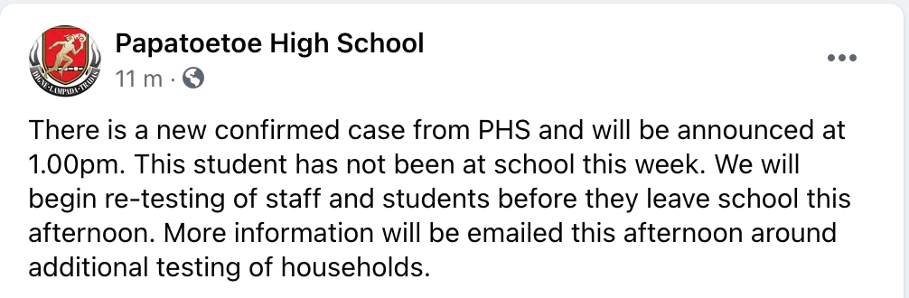In a post on Facebook, Papatoetoe High School confirmed the new case has links to the college.