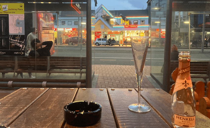 By day, the chains are open. The fast-food places with screens recover; they’re the friend who holds your hair back over the toilet bowl. The bars sluggishly yank themselves open and the regulars drift in, ill-designed footpaths be damned. Despite the road works, the blue tarps and pink foam that are the coffin and flowers on the Tory Street BK, there’s a sort of beauty to Courtenay Place by daylight.