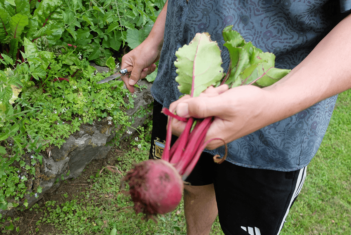 Instead of a relocation, we took one last harvest. Yes, the scissors – along with my toothbrush, special dermatitis cream and jacket with the good pockets – are lost, their potential squandered in some mystery box currently in my mum’s garage, but luckily my partner has his handy little pocket knife which all too often knocks around the inside of the washing machine. It’s surprisingly sharp, given its spots of rust and hard life. The final harvest: one beetroot, three zucchinis and a handful of silverbeet leaves.