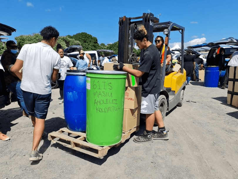 We agreed to send our supplies via the initiative created by the Aotearoa Tonga Relief Committee. Auckland mayor Phil Goff had approved for containers to be stationed at Mt Smart stadium this past weekend, to be filled with drums and supplies from people wishing to send aid to their families in Tonga. The cost of shipping was waived thanks to the generosity of Sir Michael Jones and Matson Shipping. The first ship is planned to depart Auckland on January 25 and is expected to take one week to arrive in Tonga.
