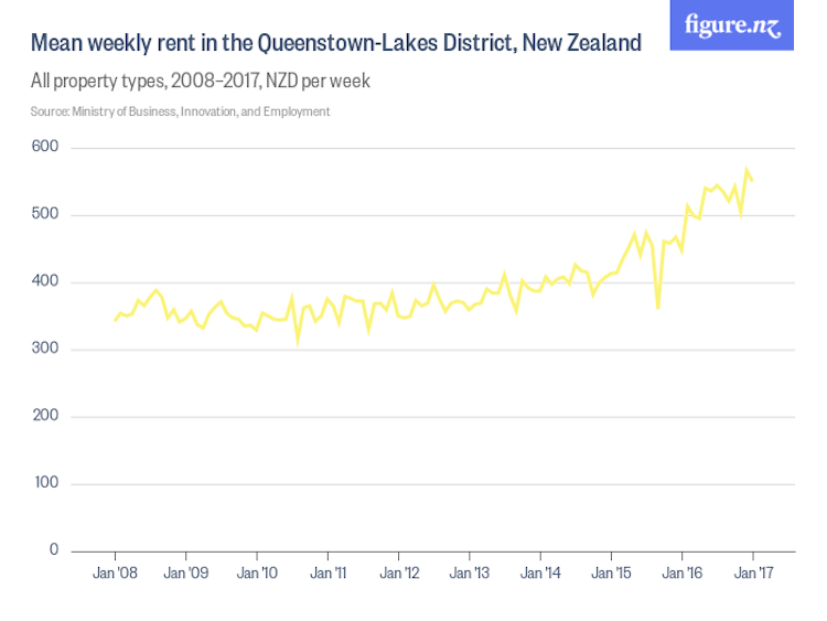 Just yesterday I saw a Facebook post from a young, self-employed builder moving from Queenstown to Wanaka and offering to pay $500 a week for a single room “plenty of work – $’s not a problem”.