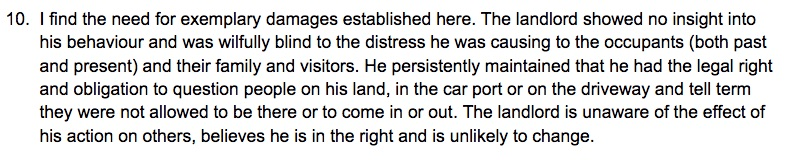 – The landlord who lived in a neighbouring property and would ask visitors who they were, why they were there and shouted that it was his land. He even stood toe to toe with a tenant, holding a weapon and threatening him.