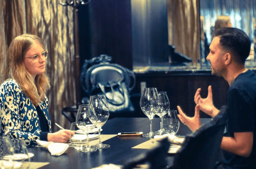 Dynamo is sitting way too close to a giant steak knife for my liking. If he was any other magician – and yes, there have been others – I would be worried that he might end up hurtling it at me, suddenly in a sequinned bikini, while I rotate on a garish winning wheel. Alas, Dynamo is not like a regular magician (wears a top hat), he’s a cool magician (wears a hoodie). And The Grill by Sean Connolly doesn’t seem to have a spinning wheel to hand.
