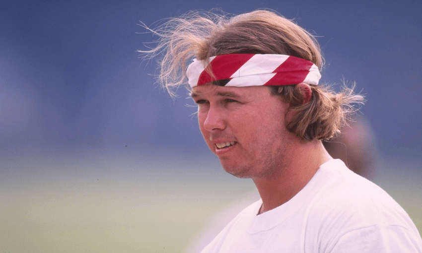 When I was a kid I took this exact photo of cricketer Shane Thomson to the hairdresser as a visual guide of what I wanted my hair to look like. They rightly ignored it and just gave me the same haircut every other boy had in 1996. This is more of a reminder that longer hair also opens up a range of new accessory options, like the bandana. (See also: football legend Ivan Vicelich’s commendable dedication to the Alice band.)