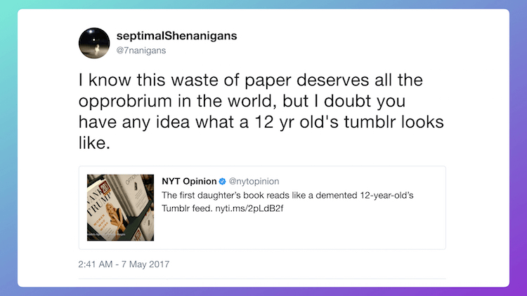 So what does all this condescension lead to? What Aurynn Shaw calls “contempt culture”. We earn credibility in our communities and our workplaces and online by dismissing things as lame, uncool, or not-as-good. The New York Times can use “demented 12-year-old’s Tumblr feed” as an insult and we all know exactly what it means.